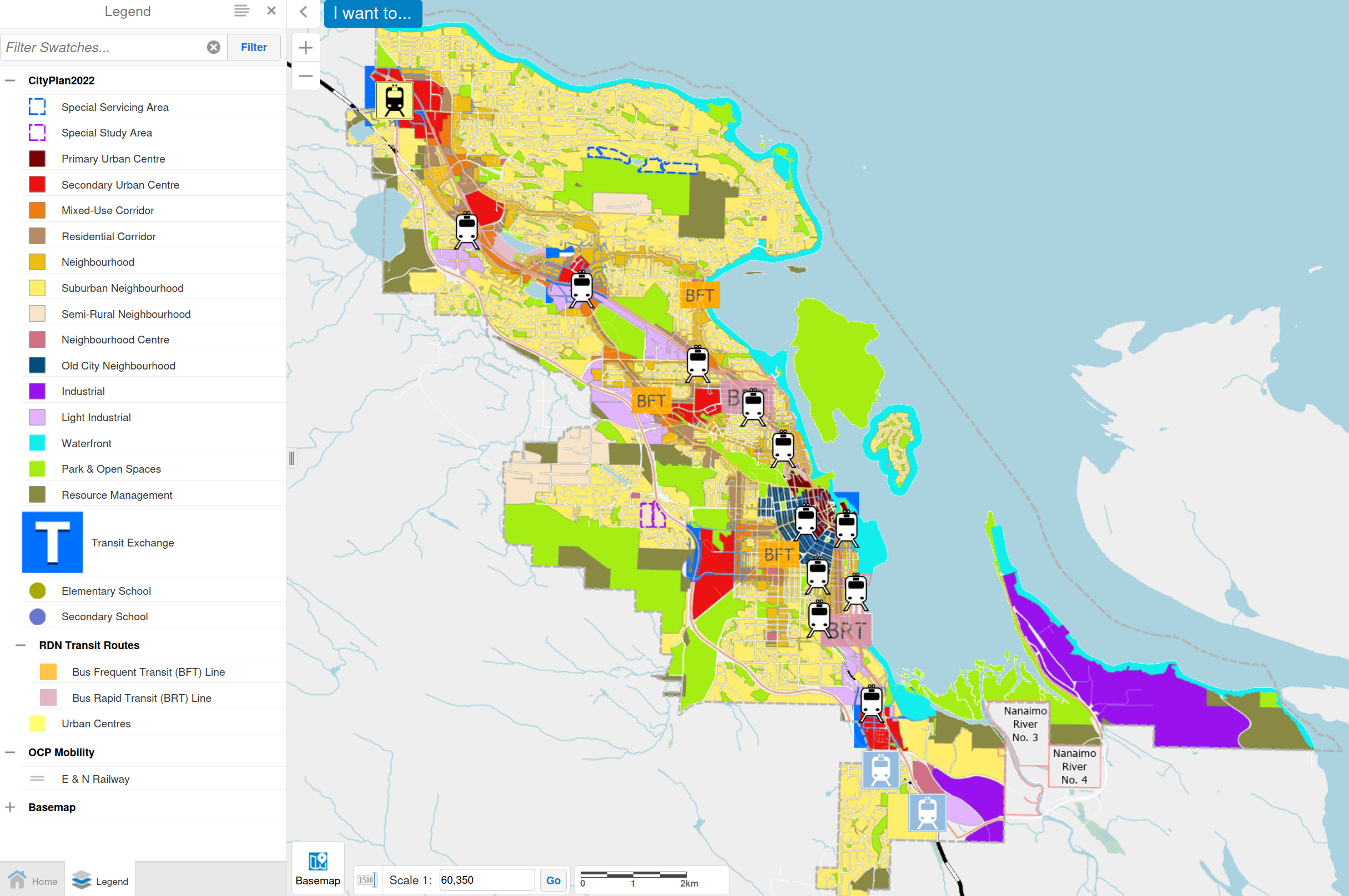 The easiest place to start would actually be Nanaimo, where our train line is still in use from downtown at the corner of Terminal & Front paralel to the waterfront south to chase river then curves around to head back north inland through the middle of town - nearly to mostar is still operational.